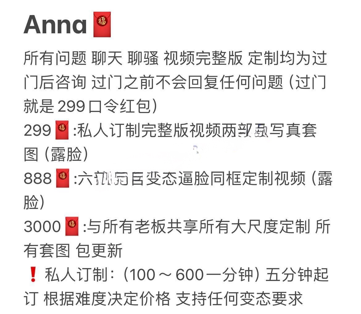 00年顶级反差御姐anna拜金母猪高价定制六部定制,(23分31秒)+5部短视频(1分15秒)。女主福利太贵了,时长也不多,应该是回不了本了,喜欢反差的请多支持。