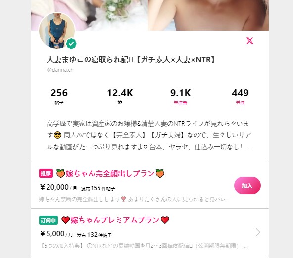 myfans人妻まゆこの寝取られ記@danna.ch付费订阅合集系列,5000日元订阅,价值RMB240元,订阅截止到2024.8.29号。内含视频153部,总时长38小时23分钟。